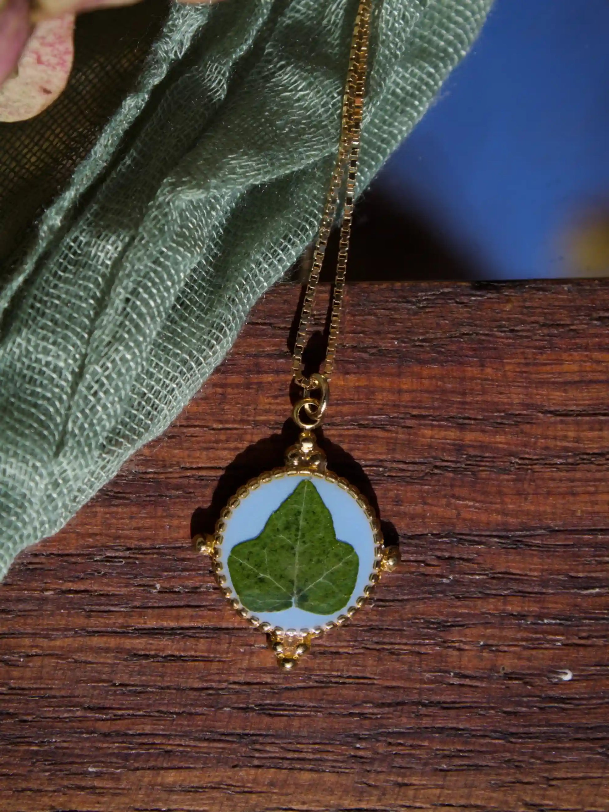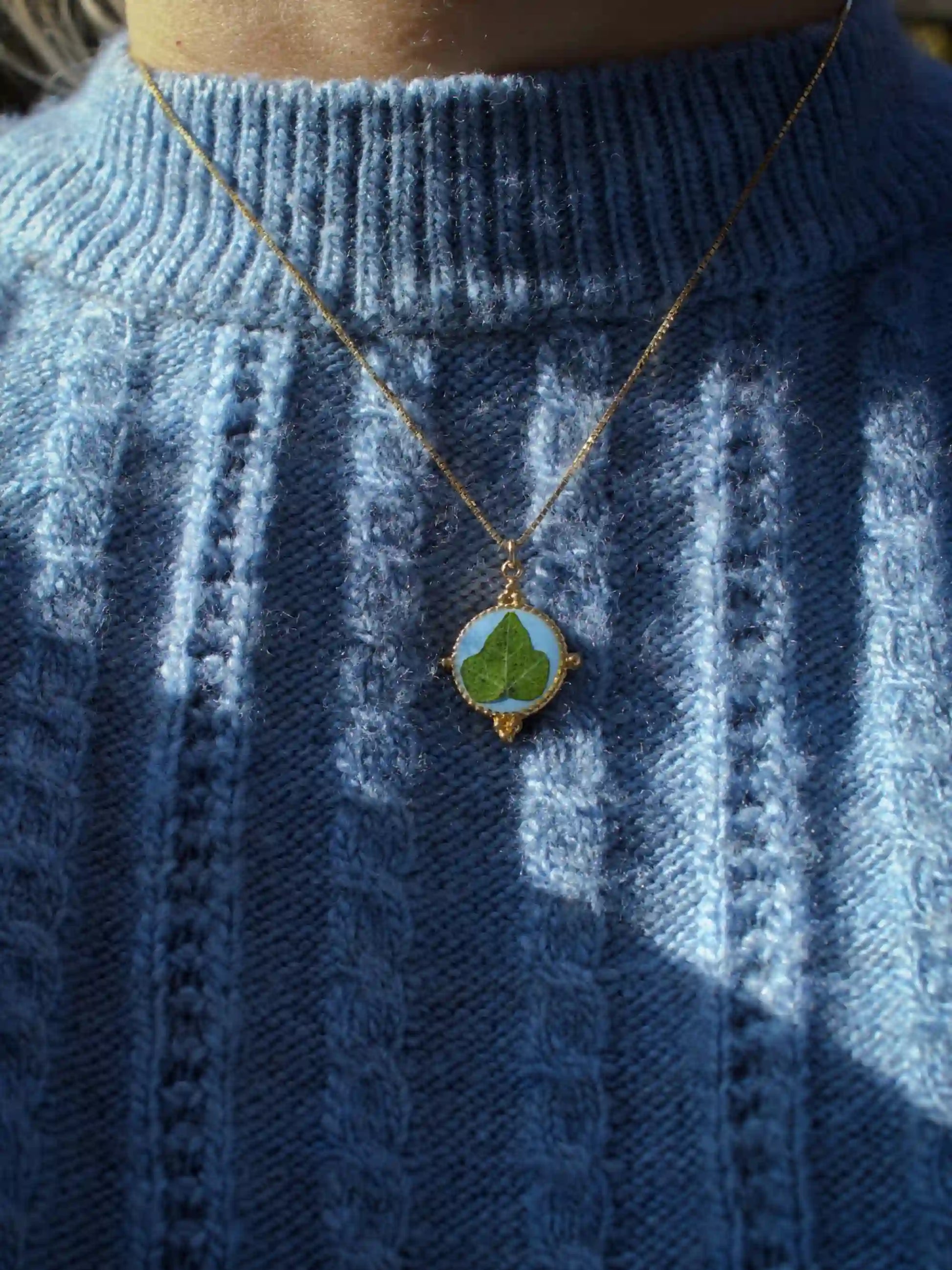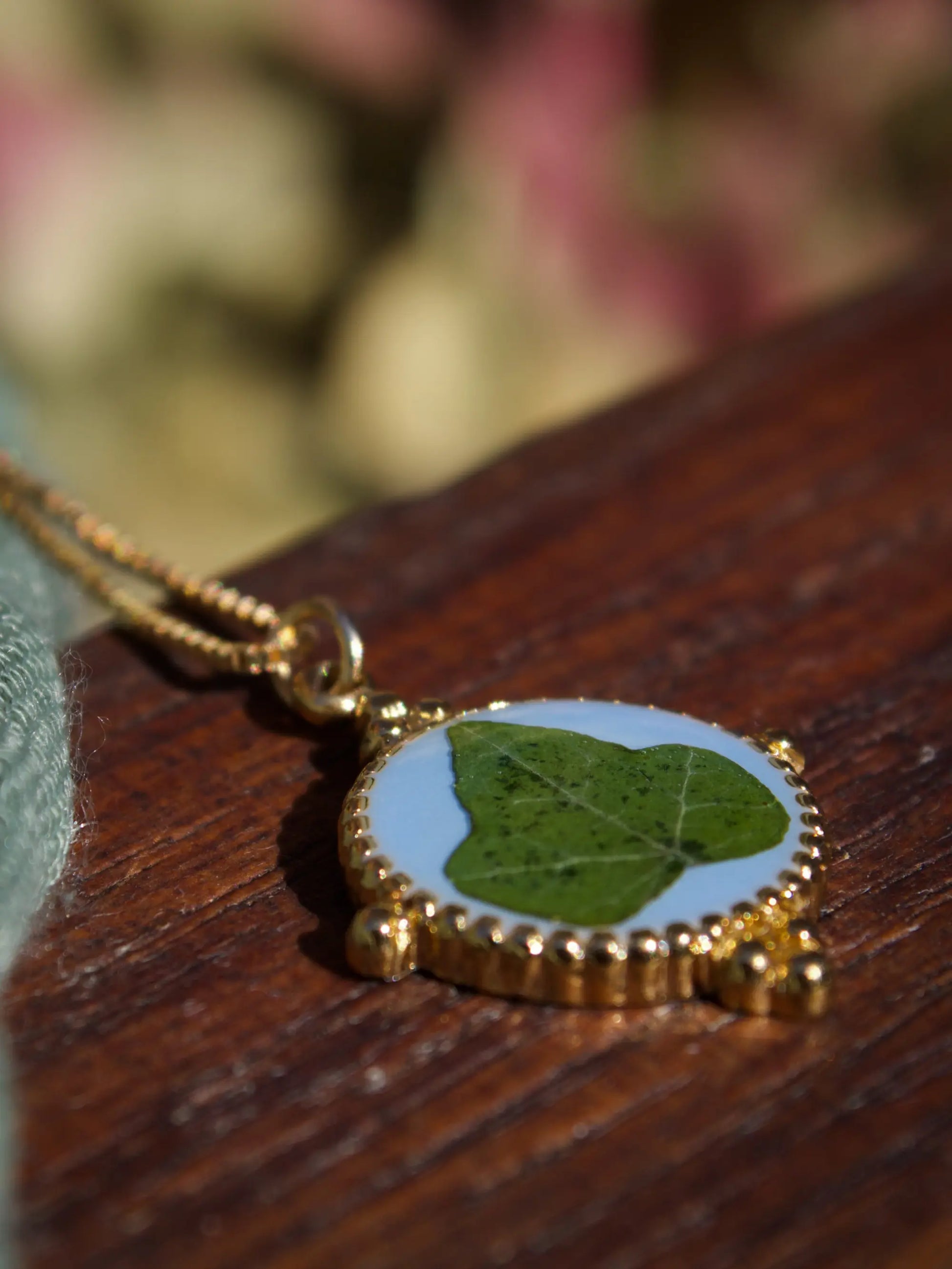 In questo ciondolo c’è una foglia di Edera immersa nella resina.