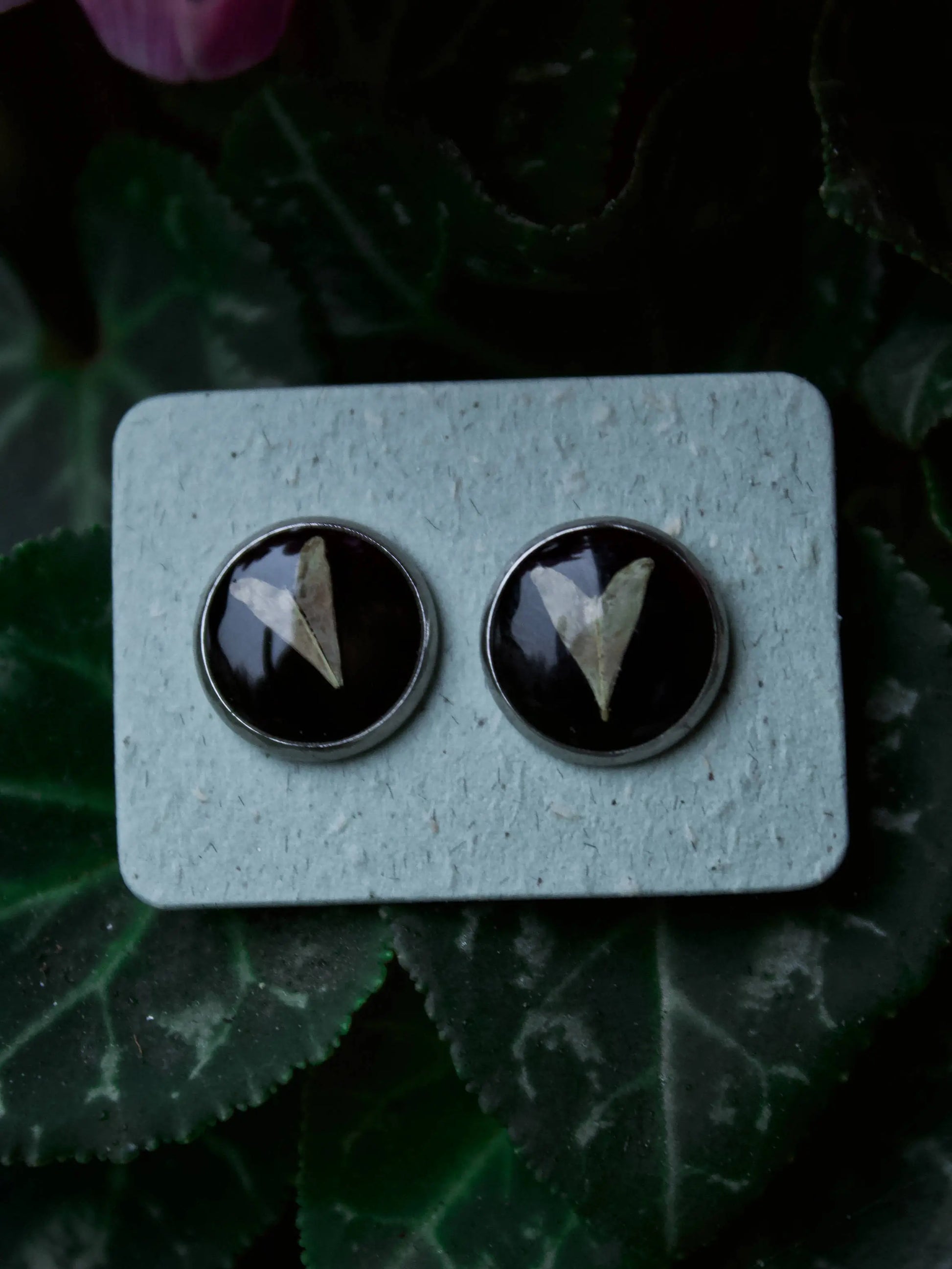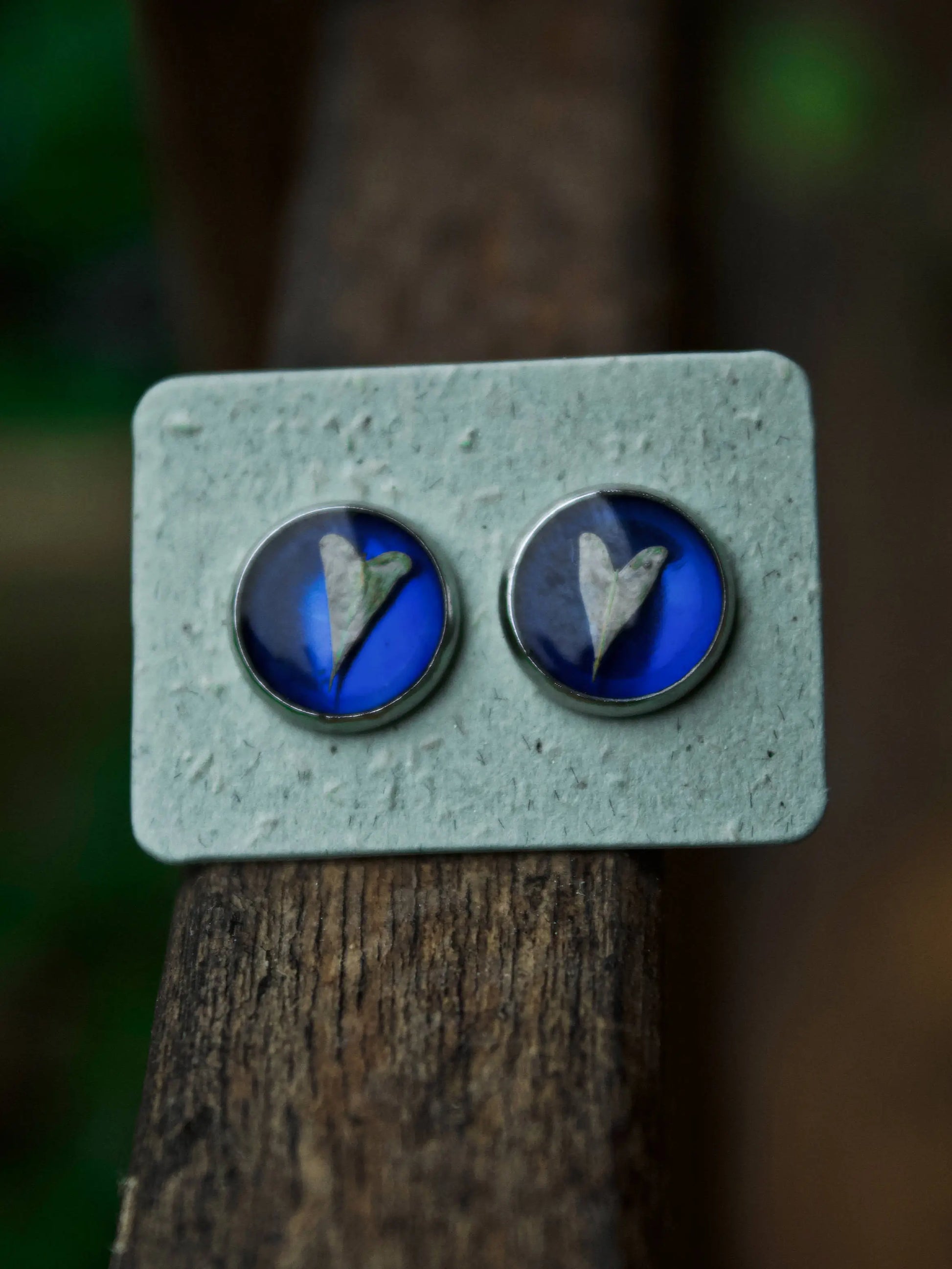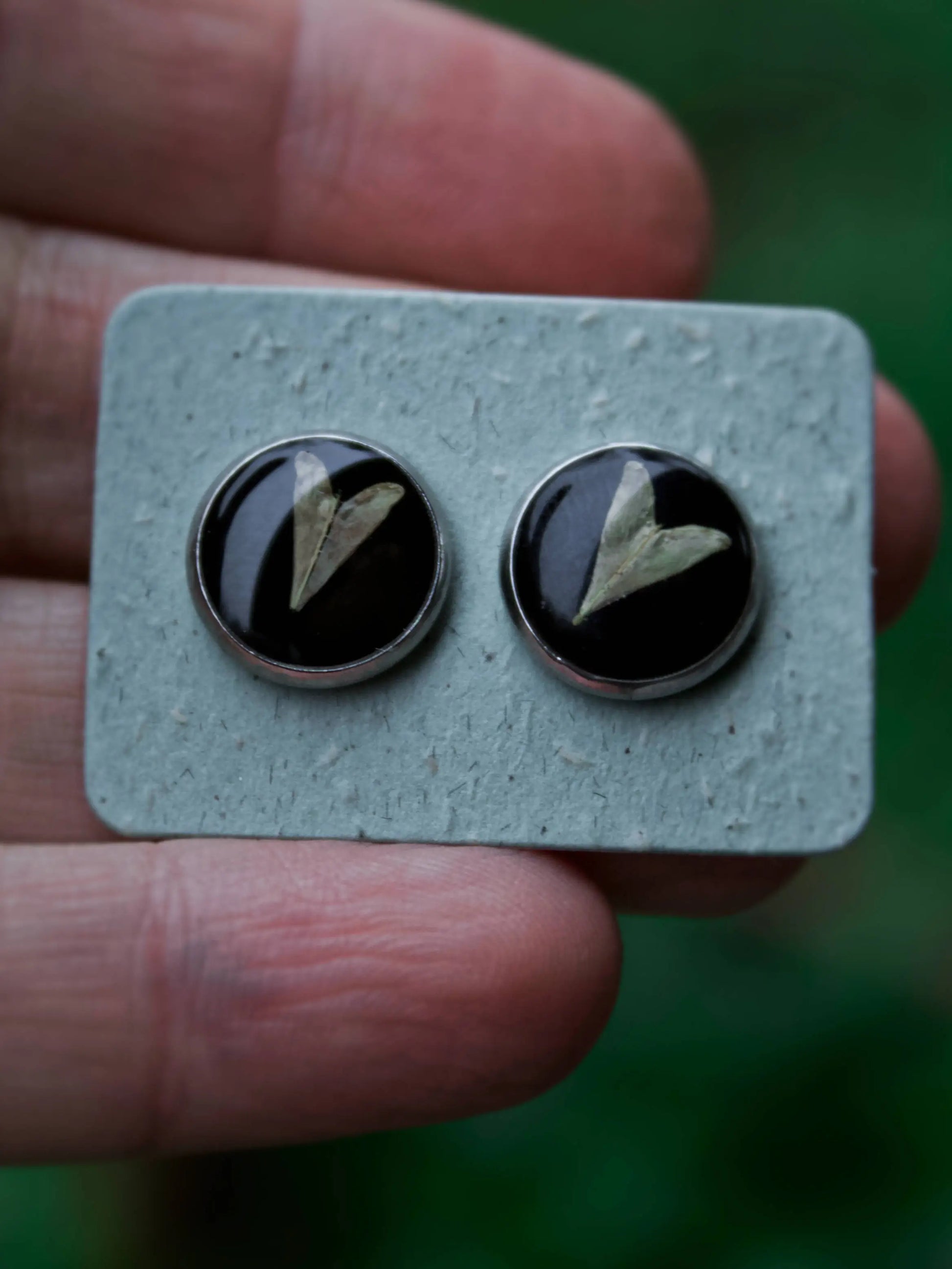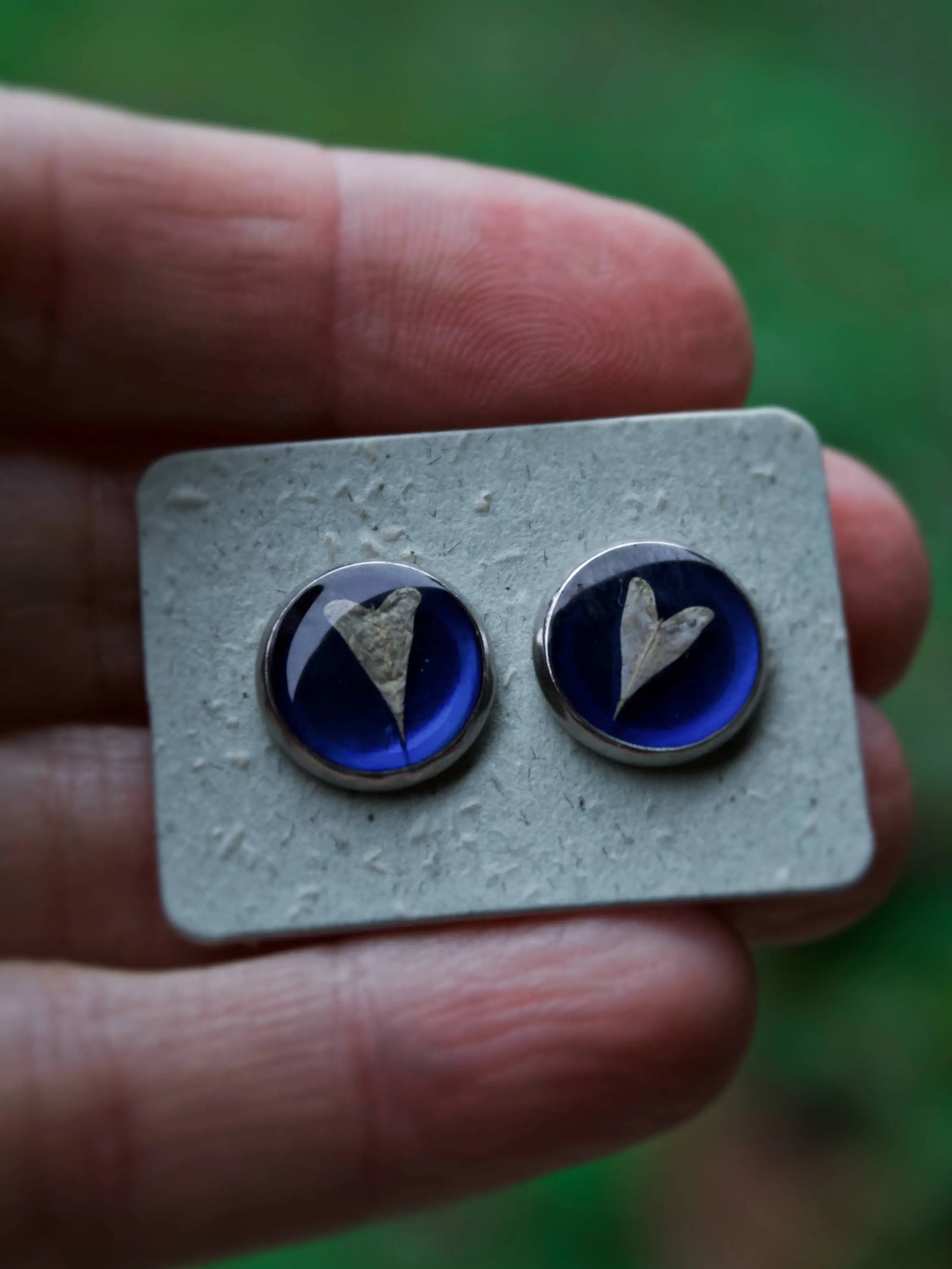 In questi orecchini a perno ci sono due piccole Borse del Pastore immerse nella resina.